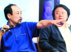 孫海英接過(guò)麥克風(fēng),一臉凝重,語(yǔ)調(diào)低沉,旁邊的呂麗萍忍不住插嘴調(diào)侃道:“你這樣子像領(lǐng)導(dǎo)講話!比欢芸鞂O海英的情緒就高漲起來(lái)。他言辭激烈地說(shuō)道:“我對(duì)中國(guó)戲劇未來(lái)沒(méi)有什么希望,現(xiàn)在戲劇都在作假象,說(shuō)假話!戲劇基本上完蛋了!戲劇死了!電影也是一樣!馮小剛裝洋蒜,他拍的不是藝術(shù)是娛樂(lè),中國(guó)已經(jīng)成為文化沙漠了!”