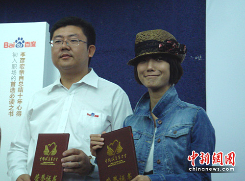 中新網(wǎng)5月10日電 (李季) 10日上午,《壹百度》的姊妹篇《壹百度2——人生可以走直線》在北京大學(xué)舉行首發(fā)儀式。王珞丹作為新書公益大使除了幫助職場(chǎng)新人解讀“陽(yáng)光法則”外,還向中國(guó)扶貧基金會(huì)“宣告”:每賣出一本《人生可以走直線》自己將與百度一起為扶貧基金會(huì)“新長(zhǎng)城自強(qiáng)助學(xué)基金”捐出一元錢。
