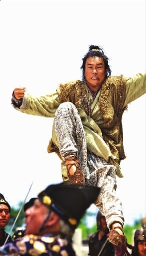 小沈陽在《大笑江湖》中飾演一名平凡小鞋匠,機緣巧合之下練就絕世武功,變成了一個勇于承擔(dān)的男子漢。既然是大俠當然要會“飛”,而動作指導(dǎo)程小東也是個“大好人”,因此讓小沈陽開心地在天上飛來飛去一整天,圓了他飛天小俠的夢。程小東表示:“小沈陽作為二人轉(zhuǎn)演員還是有些功夫底子的,否則不可能吊在半空中一天還這么瀟灑,換作別人早送醫(yī)院了。”不過由于橫店天氣過于炎熱,小沈陽一遍遍拳打腳踢、跳躍騰挪,最終虛脫不起,也差點送醫(yī)院。記者邱晨通訊員趙佳