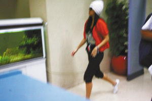 晚9:15,“來了!來了!”安檢人員對講機(jī)里傳來前方隨時更新的信息,只見章子怡在一位胡須男助手的引導(dǎo)下,面露微笑、輕松自如地走過安檢門,白色線帽和黑超墨鏡很是打眼。此時,本報(bào)攝影記者卻被劇組工作人員強(qiáng)行按住相機(jī)。旁邊的地面服務(wù)人員看到真人版“國際章”不禁感嘆道:“好瘦哦!皮膚還白耶!”一男生說:“恁個熱,還戴恁個厚的帽子!