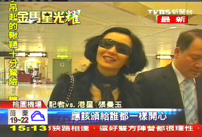 據(jù)“東森新聞”消息,墨鏡、絲巾,肩上充滿造型的包包,港星張曼玉一身流行打扮現(xiàn)身桃園機(jī)場(chǎng)。記者:“大概心里有沒(méi)有想說(shuō)一個(gè)名單?”港星張曼玉:“嗯,沒(méi)有,我覺(jué)得頒獎(jiǎng)嘉賓,不應(yīng)該這樣想,應(yīng)該頒給誰(shuí)都一樣開(kāi)心!