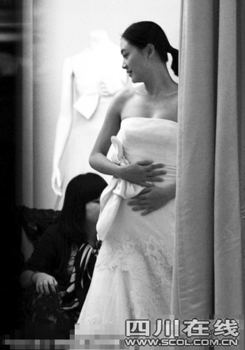 當(dāng)日,應(yīng)采兒先試穿了一件大露背簡(jiǎn)約設(shè)計(jì)拖地白禮服,新娘姿態(tài)立即顯現(xiàn),由于裙擺過長(zhǎng),大約四五個(gè)助理及店員蹲在地上,為陳太太整理禮服。應(yīng)采兒對(duì)著鏡子反復(fù)照看,又俯身翻看擺在桌上的圖冊(cè),進(jìn)試衣間換上第二套。同樣是簡(jiǎn)潔大方的經(jīng)典設(shè)計(jì)款,腰間的綠色綢緞腰封更顯身材,應(yīng)采兒的表情顯示她更青睞這一套,對(duì)著鏡子陶醉半天,不停轉(zhuǎn)身,從各個(gè)角度欣賞鏡中的自己,笑容也愈發(fā)燦爛,遠(yuǎn)遠(yuǎn)看去就像一個(gè)即將踏入婚姻殿堂的普通女孩,一臉幸福。最后應(yīng)采兒換上第三套香檳色深V小禮服,優(yōu)雅的設(shè)計(jì)和顏色同樣很襯托應(yīng)采兒的膚色,三件禮服各有千秋,應(yīng)采兒卻相當(dāng)有主見,很快選擇其中一套,滿載而歸,步出店外時(shí)應(yīng)采兒同店員告別,心情越發(fā)燦爛。據(jù)悉,這個(gè)品牌的婚紗價(jià)格不菲,一套婚紗的價(jià)格大約在8000美金到12000美金之間,最貴的能買下一輛名車,但憑借過硬的品質(zhì)和永遠(yuǎn)不出錯(cuò)的設(shè)計(jì),依舊讓全世界的明星們趨之若鶩。珍妮弗·洛佩茲,莎朗·斯通等好萊塢明星都是她的忠實(shí)擁躉,劉嘉玲不丹大婚時(shí),亦身著的是該品牌婚紗。