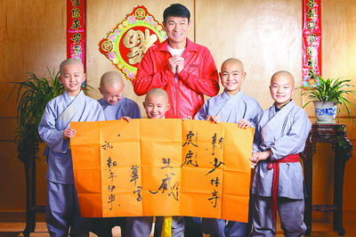 早前劉德華為拍電影《新少林寺》學(xué)了一套七星拳,春節(jié)期間,他和一班少林小武僧邊練拳法邊寫大字,用“虎虎生威”4字向影迷拜年!缎律倭炙隆啡ツ甑组_拍后,經(jīng)歷了一場(chǎng)突如其來的風(fēng)雪,由于當(dāng)天開不了工,華仔在現(xiàn)場(chǎng)跟小武僧們聊天,培養(yǎng)出了感情。這次拍照,小武僧們?nèi)挤e極響應(yīng)。(唐雪薇)