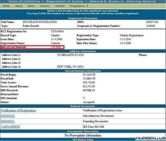網(wǎng)友疑惑:上美國IRS政夫網(wǎng)站發(fā)現(xiàn)子怡基金是在2009年5月份失效。您是在2010年2月9日重新激活的,有視頻截圖。