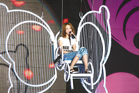 “蔡依林花蝴蝶慶功演唱會”前天在臺中市市民廣場舉行。唱片公司不惜重金,讓她坐在蝴蝶造型的座椅上,懸在十米高空演唱,嚇得她連連尖叫。其間,蔡依林還收到一封唱片公司企宣部寫的感人信件,讓她在臺上哭成淚人兒。