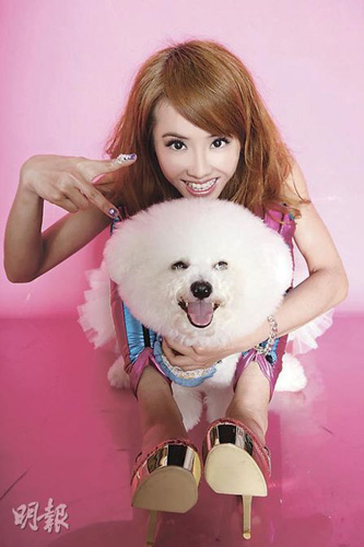 中新網(wǎng)5月22日電 香港《明報(bào)》報(bào)道,蔡依林(Jolin)新專輯《花蝴蝶》今日改版推出《華麗蛻變終極版》,Jolin特別拍攝全新30頁(yè)寫(xiě)真集。拍照當(dāng)天,她的愛(ài)犬Whoohoo見(jiàn)到主人不停擺出各種pose,它也湊熱鬧跑到鏡頭前搶鏡,還露出比主人更燦爛的笑容。Jolin得意地說(shuō):“這是誰(shuí)養(yǎng)的狗,怎么這么可愛(ài)!”Jolin又換上露肩T恤,配上腳上的紫黃雙色絲襪極搶眼。