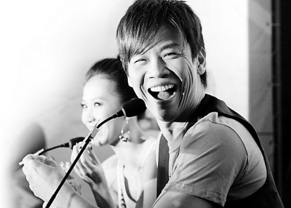 4點半光景,身披小馬甲的陶喆和弦子先后出場,并作“活力無限”狀,但老記們明顯仍在“留戀”朱丹,大多意興闌珊。無奈,弦子只好主動出擊,力曝拍廣告的時候自己不敢緊靠偶像陶喆,陶喆倒也懂得投桃報李:“其實是她太高了,攝影師讓我們背靠背的時候,她總是很有‘風度’地蹲得比我更低,好讓我看上去更偉岸些!