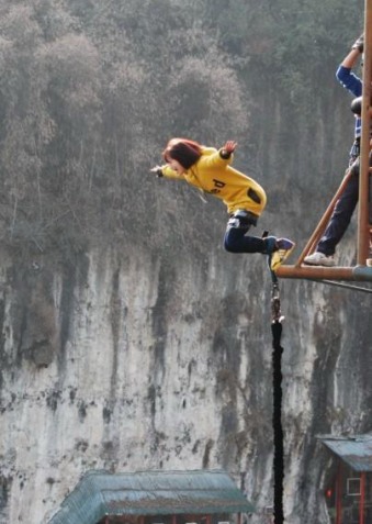 譚志玲在所有的選手當(dāng)中,一向以膽小著稱,認(rèn)識她的人都覺得她是一個(gè)文靜、可愛、膽子又非常小的女生。但是在“與JAY同型”的選秀活動中她做出了驚人的決定,挑戰(zhàn)自己膽小的性格,去冒險(xiǎn)蹦極。屬于極限運(yùn)動的蹦極,敢于挑戰(zhàn)它的人都在少數(shù),像譚志玲這樣?jì)尚〉呐ヌ魬?zhàn)更是少之又少。而她這個(gè)勇敢的決定也讓她體驗(yàn)了一把勇敢者的刺激和高空墜落的快樂。在她的博客中她這樣寫道:“我不斷努力的去追逐自己的夢想!不管路途中遇到多少挫折都要堅(jiān)強(qiáng)的面對與克服!當(dāng)你最后成功的那一刻那你就是最“型”的!就像蹦極一樣!很多人都想讓自己成為很勇敢的人,去做很多人不敢嘗試的事!可是但真的面臨的時(shí)候心里又會打退堂鼓!但其實(shí),當(dāng)你站上蹦極臺你已經(jīng)不能后退了,如果你選擇放棄那你永遠(yuǎn)就只會原地踏步!你不去挑戰(zhàn)你又怎么知道自己還可以走多遠(yuǎn)呢?”