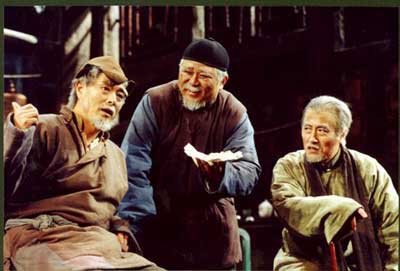 與經(jīng)典的話劇相比,電視劇《茶館》最大的特征就是“走了出去”。李功達(dá)說(shuō),話劇中的故事都是圍繞茶館進(jìn)行的,以茶館為背景,而到了電視劇就沒(méi)法這樣做了,目前的電視劇劇本中,茶館里的戲份大概只占了40%左右,60%的是茶館外的戲!巴跽乒裨谠拕≈写悠鸶鱾(gè)人物,有點(diǎn)像一個(gè)主持人似的,到我們這個(gè)電視劇中,他就是絕對(duì)的男一號(hào),劇本給他加了很多的戲,F(xiàn)在,他的命運(yùn)主線很具體地呈現(xiàn)了出來(lái)!崩罟_(dá)說(shuō),電視劇大概35集左右,分為三段,每段10-12集左右,每段說(shuō)王掌柜的一個(gè)夢(mèng),比如第一段前清時(shí)期,說(shuō)的是他的發(fā)財(cái)夢(mèng),第二段軍閥混戰(zhàn),說(shuō)的是他的改良茶館的夢(mèng),到最后一段,則是他的生存夢(mèng),只要茶館還能存在就可以了。此外,全劇也增加了不少新的人物,比如王掌柜的感情線,松二爺?shù)膬鹤拥鹊龋叭珓∮忻行盏娜宋锎蟾?00多個(gè),是一個(gè)大群戲。”