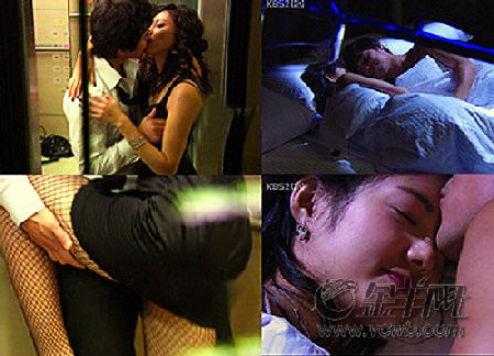 《壞愛情》在播出前就讓媒體議論紛紛,因?yàn)橥瑫r(shí)段韓國其他兩個(gè)電視臺(tái)都在播出歷史大劇《王和我》和《李算》!秹膼矍椤凡コ龅谝患痛笥锌搭^,大企業(yè)家族次子勇基(權(quán)相宇飾)和能摧毀他心靈的至愛初戀情人Joanne(車藝蓮飾)為了躲避勇基父親的耳目而逃亡濟(jì)州島,兩人在電梯里上演了一段激吻場(chǎng)面。權(quán)相宇表現(xiàn)相當(dāng)投入,還扯破對(duì)方的絲襪。而在透明玻璃電梯中拍攝出來的效果,更是強(qiáng)烈沖擊觀眾的視覺。對(duì)于這場(chǎng)激情戲,權(quán)相宇曾透露說:“這場(chǎng)戲拍了10個(gè)小時(shí)才得以完成!迸臄z時(shí),從1樓至9樓電梯上升的過程中,權(quán)相宇和車藝蓮合作默契的激情表演,讓在場(chǎng)的工作人員都看呆了。而劇中另外一對(duì)戀人仁靜(李瑤媛飾)和秀煥(金成洙飾)則在偶遇多次后雙雙墮入愛河,二人甜蜜的床戲與權(quán)相宇那一對(duì)形成鮮明對(duì)比。