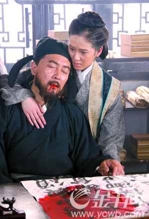 經(jīng)過(guò)兩個(gè)多月的拍攝,我國(guó)首部書(shū)法題材的大型電視連續(xù)劇《大唐書(shū)魂顏真卿》重頭戲粉墨登場(chǎng)。唐國(guó)強(qiáng)在其中飾演書(shū)法巨匠顏真卿,被媒體稱為“中國(guó)式美女”的年輕女演員趙柯則飾演其結(jié)發(fā)妻子韋蕓。兩人表演時(shí)情真意切,儼然一對(duì)“老夫老妻”。