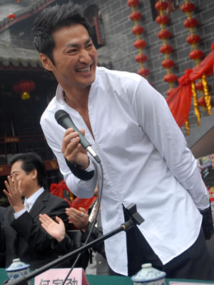 提起何家勁,不能不說到“展昭”,當年他出演《包青天》中的展大俠俘獲了無數(shù)影迷的心。時隔15年,何家勁入川拍攝一部講述成都客家人“遷徙史”的電視劇《滾滾血脈》,不過他不再舞刀弄槍,飛檐走壁,而是憑智慧建家園。昨日上午,該劇在洛帶古鎮(zhèn)舉行了新聞發(fā)布會,何家勁和女主角鄔倩倩等亮相,好動的他搶盡所有人的風頭,現(xiàn)場大秀半生不熟的客家話,誰料卻遭到服務員小妹的“奚落”。