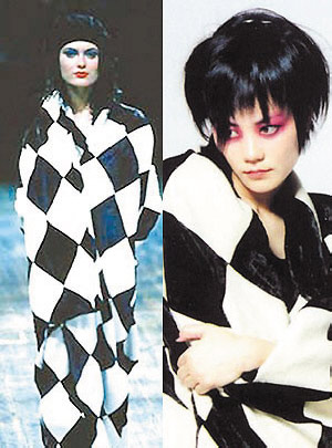 對(duì)于新出爐的“紅眼妝”,何琳卻持保留意見,“我眼部的妝容也是葉錦添老師特意要求的,劇里也只有我有這樣妝。我的妝也比其他女孩子濃,都是為了配合元春華麗富貴的頭飾和服飾,突出厚重感。在戲中我覺得很美,生活中出現(xiàn)我也會(huì)覺得太可怕,太夸張了吧!币恢眻(jiān)持新“紅樓”人物造型要走昆曲風(fēng)的葉錦添此次有如此創(chuàng)舉其實(shí)早有跡可循,之前公布的襲人、尤二姐也涂有粉紅色的眼影,只是沒有像元春那樣沖擊力強(qiáng)的鮮艷大紅突出眼部。有趣的是,元春這款眼妝和王菲推出《寓言》和《王菲》時(shí)先鋒兼頹廢的“紅眼妝”一模一樣。