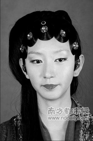 本次公布的照片和網(wǎng)上意外泄露的版本果然有所不同。披下來的“蘇三”式頭發(fā)在正式版本中被盤起來了,一襲深色系帶蕾絲花邊的服裝也比之前黑、綠、紫紅的搭配版本華貴許多。為了突出秦可卿的性感,秦可卿出現(xiàn)的姿態(tài)卻是紅唇綠眼,貼片頭上的裝飾也更加花哨,還戴了一朵紫色大花。別于其他人高領的造型,秦可卿是抹胸式的露頸裝扮亮相的。(記者 齊帥)