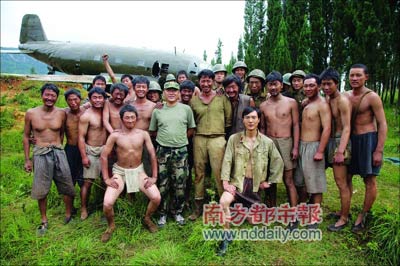 “經(jīng)過了171天,我宣布《我的團(tuán)長(zhǎng)我的團(tuán)》(簡(jiǎn)稱:團(tuán)長(zhǎng))今天關(guān)機(jī)!”昨天,在昆明滇池附近,《團(tuán)長(zhǎng)》拍完了最后一場(chǎng)戲。在場(chǎng)演員張國(guó)強(qiáng)、張譯、高峰、羅京民等在那刻高聲歡呼,相互擁抱。他們個(gè)個(gè)像從泥土中爬出來的,破衣爛衫,灰頭土臉,卻神采飛揚(yáng),所有的人最大的愿望便是去洗個(gè)熱水澡。而在拍攝的最后一天,歷經(jīng)磨難的《團(tuán)長(zhǎng)》也首次向媒體開放現(xiàn)場(chǎng),記者探班了該劇的最后一場(chǎng)戲:“炮灰團(tuán)偶遇日本兵”。這場(chǎng)戲雖然是在最后一天才拍,卻是發(fā)生在前面的一個(gè)片斷,確切地說,這是第3集第29場(chǎng)戲。這個(gè)時(shí)候戰(zhàn)爭(zhēng)剛剛開始,主角們的身體尚未殘缺。他們乘飛虎隊(duì)的C46運(yùn)輸機(jī)被日本軍隊(duì)襲擊,被迫降在緬甸。此時(shí),炮灰團(tuán)遇到了日軍,第一個(gè)日本兵誤認(rèn)為他們是緬甸反英武裝,迷糊中被迷龍(張國(guó)強(qiáng)飾)干掉。后面日軍沖來時(shí),迷龍帶頭逃跑,槍彈炸藥聲四起。這場(chǎng)戲中,日軍拿著10來?xiàng)l真槍,背景是被炸毀巨大C46運(yùn)輸機(jī)。