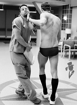 在這集宣傳片中,“菲爾普斯醫(yī)生”脖子掛著金燦燦的獎牌,穿著夸張搞笑,所到之處無不吸引目光。著名脫口秀主持人吉米·坎摩爾淪為配角,扮演一位傷勢嚴(yán)重、躺在手術(shù)臺上的病人。不過,當(dāng)他看到菲爾普斯醫(yī)生一身泳裝走進(jìn)手術(shù)室時(shí),似乎已經(jīng)“不想活了”。菲爾普斯坦承演戲要比游泳難很多,但成為熱播劇集的一部分“會非常有趣”。