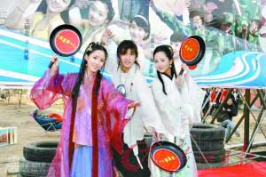 左圖為演員們出席開(kāi)機(jī)儀式。