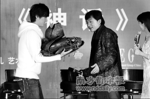這次被成龍親自欽點扮演男一號,胡歌非常激動,F(xiàn)場他也非常落力地在大哥面前表現(xiàn),不僅與白冰合唱了一首《神話》, 還當(dāng)著成龍的面表示,自己演翻版孟將軍壓力很大,但會盡量學(xué)習(xí)大哥演技“無限度地接近成龍”,說得成龍開心不已,親自將當(dāng)年拍攝電影穿的一套價值百萬的盔甲送給胡歌。當(dāng)年由金喜善扮演的女一號卻通過網(wǎng)絡(luò)海選最終決出。在描述自己心中理想的女主角時,唐季禮連連用了“蘭心慧質(zhì),閉月羞花……”等幾近完美的詞來形容,倒是有記者直接問到他有無打算請緋聞女友林心如來演時,他則不得不尷尬地回應(yīng)“也可以吧”隨后趕緊轉(zhuǎn)移話題。