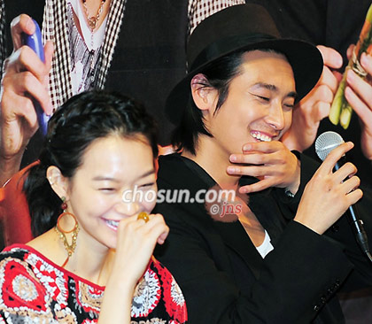 中新網1月20日電 據朝鮮日報日文版報道,1月19日,由申敏兒、朱智勛、金泰宇主演的影片《廚房》試映會布會在首爾舉行。出席試映會的該片主演申敏兒和朱智勛開懷大笑。