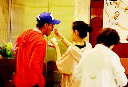 當(dāng)晚6時(shí)許,新婚夫婦王學(xué)兵、孫寧到商場(chǎng)購(gòu)置生活用品。王學(xué)兵身穿橘紅色上衣、牛仔褲,戴黑框眼鏡,孫寧一身休閑打扮,橘紅色的挎包與王學(xué)兵的上衣相呼應(yīng)。兩人買(mǎi)完一堆生活用品之后,王學(xué)兵又買(mǎi)了冰淇淋,在等候電梯時(shí),孫寧甜蜜地喂王學(xué)兵吃冰淇淋。
