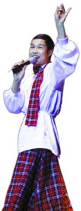 雖說是趙家班的巡演,但連舞臺上都掛著“小沈陽笑轉(zhuǎn)2009”的橫幅,場子里90%以上的觀眾更是沖著這位當(dāng)紅諧星而來,難怪演出開始的一個半小時之后,當(dāng)小沈陽穿著經(jīng)典的蘇格蘭裙裝蹦著走到舞臺中央時,現(xiàn)場立即爆發(fā)出雷鳴般的掌聲,熱情的女觀眾也開始接力般一個個地往舞臺上送玫瑰花。