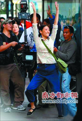 日前,電影《跳出來》在上海拍攝,這部由馮德倫執(zhí)導,周星馳監(jiān)制,張雨綺、陳冠希和吳彥祖主演的電影吸引了不少人的目光。當然其中最受關注的還屬“星女郎”張雨綺。探班當天,張雨綺的造型讓記者驚訝,麻花辮、黑布鞋、深藍工裝褲、小碎花襯衫,儼然一個70年代初的村姑!靶桥伞边一個勁地在眾人面前扭腰,可能由于露天扭腰委實不好意思,小妮子NG不斷。