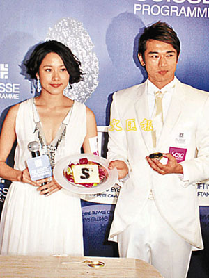 林嘉欣低胸裙性感 親密為男伴涂眼霜(圖)