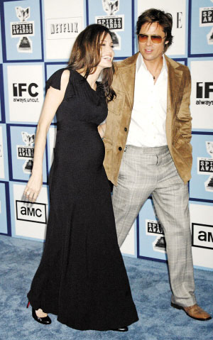 旨在獎勵拍攝成本低于2000萬美元電影的美國電影獨立獎昨日頒獎,早前被證實有孕在身的安吉麗娜·茱莉與親密愛人皮拉德·皮特盛裝出席,茱莉身穿一身束身黑色禮服,凸起的小腹顯露無遺,兩人的幸福溢于言表。據(jù)美國《人物》雜志報道,有消息人士透露兩人對于未來新成員的加入感到十分興奮。