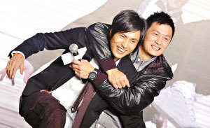 通過拍攝該片而結(jié)下深厚友誼的陳坤、余文樂,在首映式上也以兄弟互稱,按照主持人的要求,兩人在現(xiàn)場擺出各種“兄弟”pose,而余文樂更趁陳坤不注意,突然用雙臂摟住他親了一口,讓人跌破眼鏡。事后余文樂笑言,他和陳坤表面上雖然很酷,其實(shí)都是“悶騷”型,只要熟了就可以隨便打鬧。而隨著首映式流程的進(jìn)行,陳坤在說到對余文樂的印象時竟笑著脫口而出“XX的”,這句粗口讓主持人和余文樂都吃了一驚,余文樂趕緊搶過陳坤的話筒說:“你今天太興奮了,別再說了,說多錯多!倍_的導(dǎo)演馬楚成和主演譚俊彥則被二人冷落在旁,慘被淪為當(dāng)天活動的“配角”。