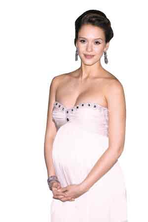 阿爾芭挺著大肚更見(jiàn)優(yōu)雅孕味 宣傳《見(jiàn)鬼》(圖)