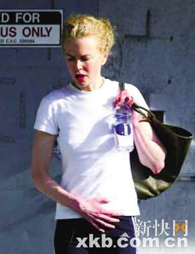 妮可當(dāng)日穿上她最愛的運動套裝,與教練進行緩步跑,期間她還聽老公KeithUrban、MaryJ.Blige、BonJovi 及Culture Club 等的歌曲進行胎教。跑了一會兒,妮可已滿頭大汗,于是她隨手掀起外套和T恤,讓肚皮暴露出來散散熱。