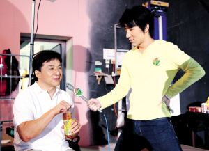 由于“原葉”調(diào)味茶飲料有兩種口味上市:“原葉”檸檬風(fēng)味冰紅茶和含真正蜂蜜的“原葉”綠茶,片中有三組成龍父子倆各自手拿一瓶“原葉”茶搭肩的鏡頭,結(jié)果這三組鏡頭,每條都拍了十多遍。成龍每次“拍”兒子肩膀時都很用力,甚至發(fā)出“啪啪啪”的聲響。對父親的“敬業(yè)”,房祖名“忍”了。沒想到收工時,房祖名發(fā)現(xiàn)肩膀居然被“拍”出一片淤青。不過房祖名并不叫苦,還夸父親:“不百分百投入,怎么會有那么多好電影呢?”成龍父子的敬業(yè)態(tài)度,讓在場的工作人員折服。