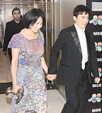 劉嘉玲與梁朝偉十指緊扣 左手巨型鉆戒耀眼(圖)