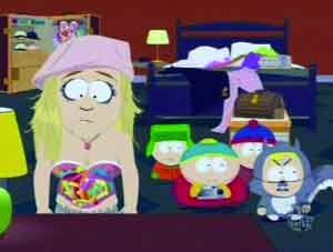 3月20日,動(dòng)畫片《南方公園》中的布蘭妮,先是因?yàn)槭懿涣斯纷械膰露虡屪詺,之后沒(méi)了半個(gè)頭的她還以去年參加MTV頒獎(jiǎng)禮時(shí)的造型現(xiàn)身演出。