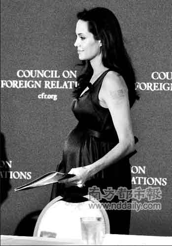 美國時間8日,盛傳懷雙胞胎的安吉莉娜·茱莉現(xiàn)身華盛頓,參加一個關于“沖突中的伊拉克、教育及兒童”的討論會。雖然她和配偶皮特一直沒有承認再次懷孕,但是茱莉高高隆起的腹部使懷孕一事已毋庸置疑。