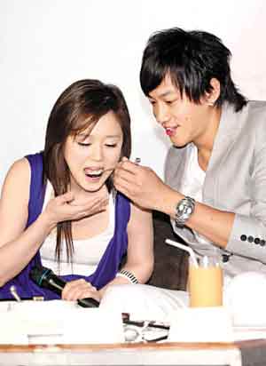 張娜拉日前在臺(tái)灣舉行新專輯記者會(huì),緋聞男友何潤東推掉3場(chǎng)表演,舍棄180萬臺(tái)幣的酬勞悄悄現(xiàn)身記者會(huì),并承諾會(huì)陪她跑遍4場(chǎng)簽唱會(huì),兩人還上演親密擁抱的戲碼;不過唱片公司特地安排猛男現(xiàn)身熱舞,卻又把張娜拉嚇得驚慌失措!