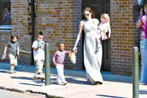 安吉麗娜·茱莉攜兒女逛街 展超級星媽幸福姿態(tài)
