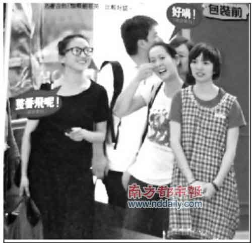 5月6日下午5點(diǎn)半,周迅和劉若英被發(fā)現(xiàn)出現(xiàn)在香港銅鑼灣百德新街。兩位演技派女星素顏出巡,周迅戴著黑框眼鏡,穿著黑衣黑褲扎起發(fā)髻,差點(diǎn)讓人認(rèn)不出,旁邊的劉若英則穿著白色T恤。其間兩人煙癮大發(fā),更走進(jìn)后巷吞云吐霧。最后,兩人讓司機(jī)開車接載戰(zhàn)利品,更不顧一邊的停車檢控告示牌,違例停車。