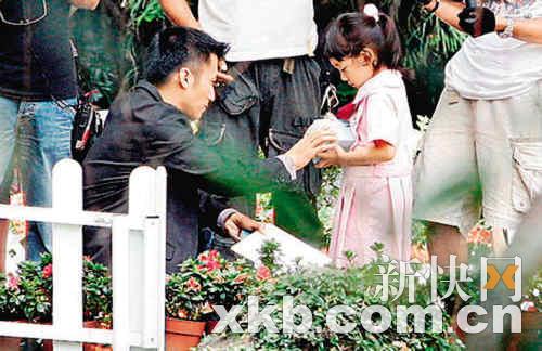 謝霆鋒和張靜初前日到香港公園為英皇電影《證人》秘密開工拍攝。前日拍攝的是小妹妹把畫板交給負傷的霆鋒的戲份,霆鋒則要將手上的食物盒交給小妹妹。與張柏芝育有一子的霆鋒,經(jīng)常被追問會否再為人父,前日在片場所見,他與小女孩演對手戲時分外細心,儼如慈父般與對方拍戲。鏡頭后亦不時逗小妹妹玩樂,小妹妹亦顯得相當(dāng)高興?赡芴鞖饪釤峒由闲⊙輪T演出經(jīng)驗不多,難免出現(xiàn)NG情況,但霆鋒亦愿意耐心教導(dǎo),又不時與她聊天,與小演員相處十分融洽。