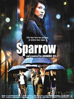 在正式發(fā)布的《文雀》法國版海報(bào)上,任達(dá)華、林家棟等4位男演員都撐著雨傘排列在海報(bào)下半部,而林熙蕾的半身像占據(jù)了大半畫面。過去杜琪峰犯罪影片中女性角色一向戲份不重,因而這張海報(bào)的排位令人感到意外。
