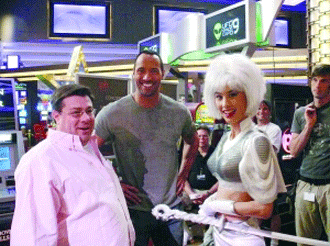 在好萊塢環(huán)球影城大火中躲過一劫后,黃圣依參演的迪斯尼巨制《巫婆山》正式轉(zhuǎn)場到美國賭城拉斯維加斯。黃圣依的外星公主造型曝光后,昨天她與巨石·強(qiáng)森拍攝了兩人合作的第一場戲——外星公主在外星兵團(tuán)的保衛(wèi)下乘坐飛碟降臨地球。