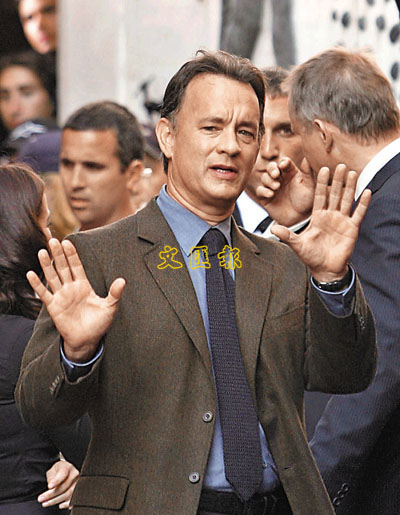 預(yù)期跌出百大的湯姆·漢克斯,看來心情未受影響。(文匯報圖)