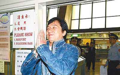 成龍昨傍晚離臺(tái),雙手合十感謝臺(tái)灣朋友。