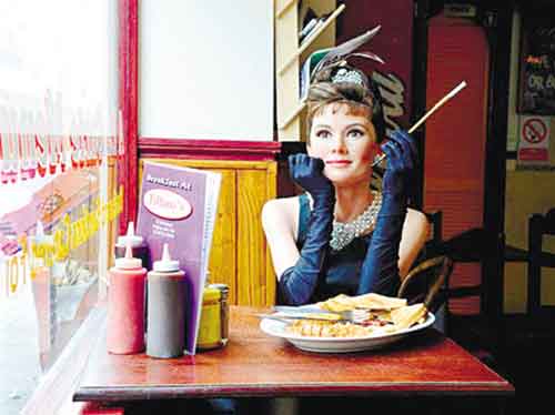 奧黛麗·赫本蠟像再現(xiàn)<蒂凡尼的早餐>中場景(圖)