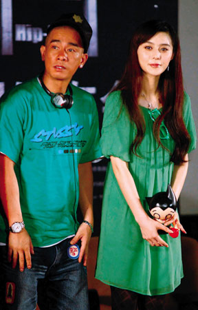 在《精武門》中,范冰冰飾演的女DJ和陳小春扮演的街頭小混混有一段浪漫含蓄的感情,也許是戲內(nèi)沒有過足情侶癮,昨日的首映禮上,兩人不約而同地穿上艷綠色服裝,格外搶眼。主持人以此打趣范冰冰和陳小春,兩人表現(xiàn)自然。范冰冰還代陳小春為遲到致歉,陳小春也十分護(hù)著“女友”,在范冰冰話筒失靈時,心甘情愿地做起話筒架。在導(dǎo)演發(fā)言環(huán)節(jié),兩人更是集體“開小差”,陳小春在一旁手舞足蹈地對范冰冰講悄悄話,而女方則回以微笑。