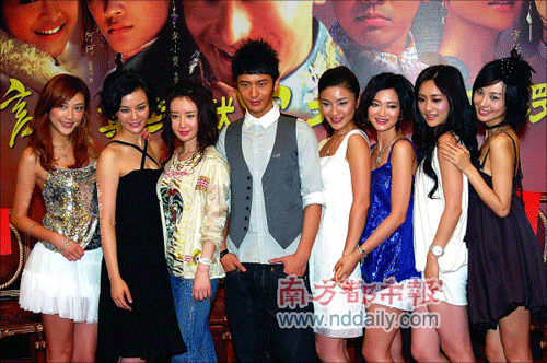 繼在廣東等地開播后,昨天下午,《鹿鼎記》又在北京舉行了盛大的開播會。張紀中率黃曉明和他的七個老婆劉孜、應(yīng)采兒、胡可等齊齊亮相,7個美女濃妝艷抹一個比一個性感,并且在應(yīng)采兒帶頭下現(xiàn)場大肆“調(diào)戲”黃曉明,大大搶走黃曉明的風頭。而前幾次宣傳都未露面的鐘漢良也專程趕到北京造勢,鐘漢良也面對7個美女的伶牙俐齒也更顯言辭笨拙,只好與黃曉明兩人相視苦笑,黃曉明最后不得不大嘆“還是一夫一妻制好。
