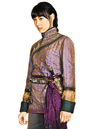這次李連杰扮演的龍帝(右圖),令人聯(lián)想起中國古代暴君秦始皇。他渴望長生不老,而楊紫瓊演的女巫則擁有不死天書,李連杰不但達(dá)成長生不老的愿望,還想占有她,可楊紫瓊卻愛上了羅素扮演的將軍,并生下梁洛施,李連杰遂將羅素五馬分尸,悲慟的楊紫瓊遂向李連杰施咒變兵馬俑。而梁洛施在戲中是已活了2000年的美少女,戲份貫穿始終,比楊紫瓊更搶鏡。