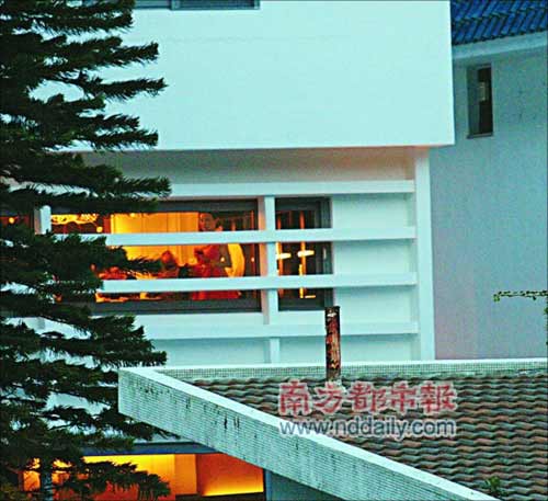 偉仔與嘉玲8月9日在家中舉行新婚派對,嘉玲將頭發(fā)盤起,穿上桃紅色大露背低胸晚裝倍感迷人。當日看到很多賓客盛裝赴會,據(jù)悉有張學友夫婦、劉德華(華仔)及其他圈內(nèi)外好友。華仔8日晚才結(jié)束北京奧運會開幕式的表演,隨即趕回港出席派對。8月9日傍晚時分,已見身穿桃紅大露背晚裝的嘉玲在家中招呼賓客,每個人手上都拿著紅酒把酒言歡,不時在屋內(nèi)游走,大家都很享受這種自由派對的無拘無束。只是后來偉仔發(fā)現(xiàn)記者遠距離拍攝屋內(nèi)情況,就走到窗前將窗簾拉上,但無礙他們的興致。他們一直在狂歡,以致守在花園門外的記者也不時聽到他們傳來的笑聲。