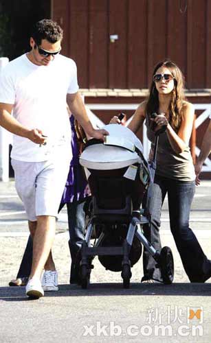 上周六下午,好萊塢玉女明星杰西卡·阿爾芭和老公沃倫帶著小女兒瑪麗·奧內外出午餐。阿爾芭和老公輪流推著嬰兒車,一家三口其樂融融。