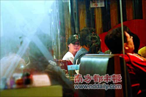 阿嬌沒(méi)有發(fā)現(xiàn)記者時(shí),原本與一眾好友吃火鍋邊吃邊笑,其后知道門外有記者,即渾身不自然起來(lái),一時(shí)以手遮面,頭頂?shù)拿弊佑停憩F(xiàn)得十分尷尬,她待了5分鐘已按捺不住,此時(shí)席間各人突然做出很多古靈精怪的動(dòng)作,阿嬌即從座位轉(zhuǎn)身離開,這種招數(shù)很難避過(guò)記者耳目,阿嬌只好拉低帽子急步出門,然后跳上保姆車,車輛直駛到她家門口,打消了與好友聚會(huì)的興致。